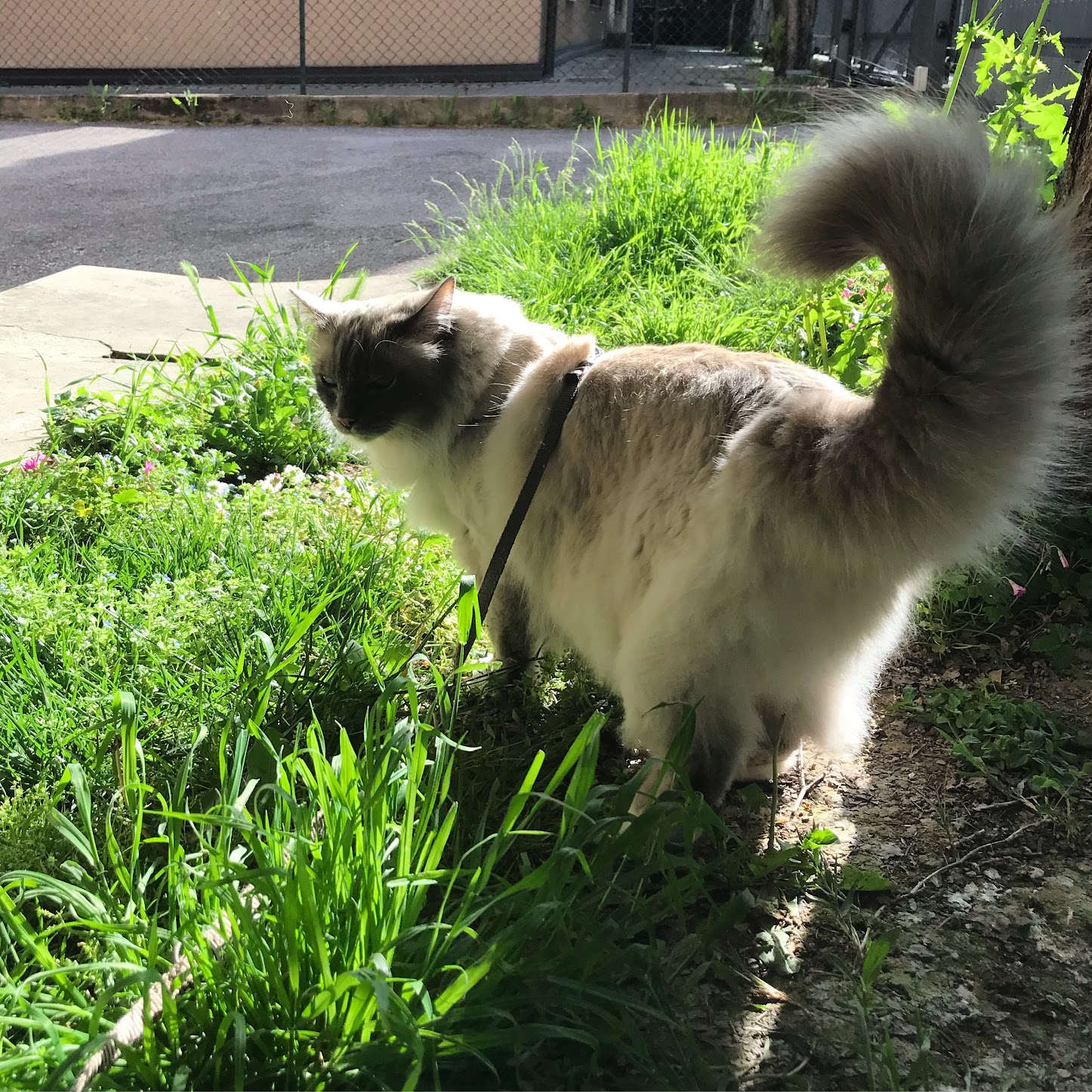 Sean is a Birman cat that loves to walk on a leash.